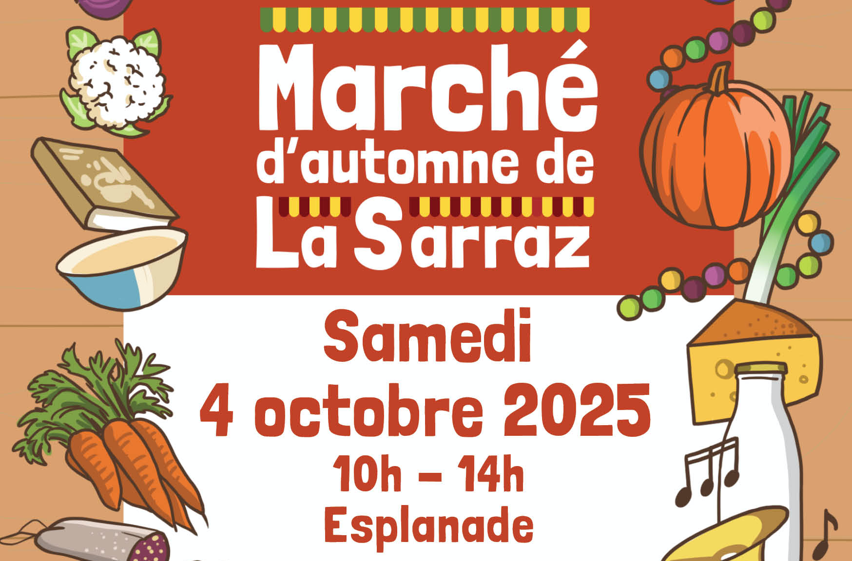 La Société de Développement de La Sarraz et Environs et l'association La Filature organisent Le Marché d'automne de La Sarraz pour la deuxième année consécutive. Vous y retrouverez les producteurs et productrices…